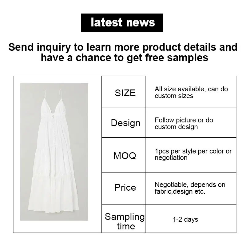 స్థిరమైన మరియు శ్వాసక్రియ రూపకల్పన: ఈ సొగసైన లేయర్డ్ వి-మెడ బ్యాక్లెస్ దుస్తులు 100% నార నుండి తయారవుతాయి, ఇది రోజువారీ జీవితానికి సరైన శ్వాసక్రియ మరియు స్థిరమైన వస్త్రాన్ని నిర్ధారిస్తుంది. యాంటీ-స్టాటిక్ మరియు యాంటీ-రింకిల్ ఫీచర్లు ఏ స్త్రీకి అయినా ఆచరణాత్మక ఎంపికగా చేస్తాయి. కాస్టోమైజేషన్ ఎంపికలు: వివిధ రకాల అనుకూలీకరించదగిన రంగులు మరియు పరిమాణాలలో లభిస్తాయి, ఈ దుస్తులు మీ ప్రత్యేకమైన శైలి మరియు ప్రాధాన్యతలకు తగినట్లుగా ఉంటాయి. అధిక-నాణ్యత పదార్థాలు: 100 గ్రాముల ఫాబ్రిక్ బరువుతో, ఈ దుస్తుల నుండి ఈ దుస్తులు ధరించడానికి సౌకర్యవంతంగా ఉంటాయి. ఒక నమూనాను ఆర్డర్ చేయండి మరియు పెద్ద క్రమాన్ని ఉంచడానికి ముందు వ్యక్తిగతంగా దుస్తులను చూడండి. పెట్యూటివ్ ధర: ప్రత్యక్ష కర్మాగారం మరియు వాణిజ్య సంస్థగా, మేము పోటీ ధర మరియు OEM/ODM సేవలను అందిస్తున్నాము, ఇది వ్యాపారాలు మరియు పెద్దమొత్తంలో కొనుగోలు చేయడానికి చూస్తున్న వ్యక్తులకు ఆకర్షణీయమైన ఎంపికగా మారుతుంది.